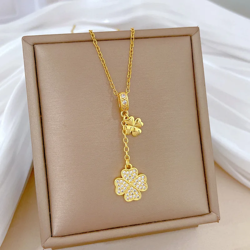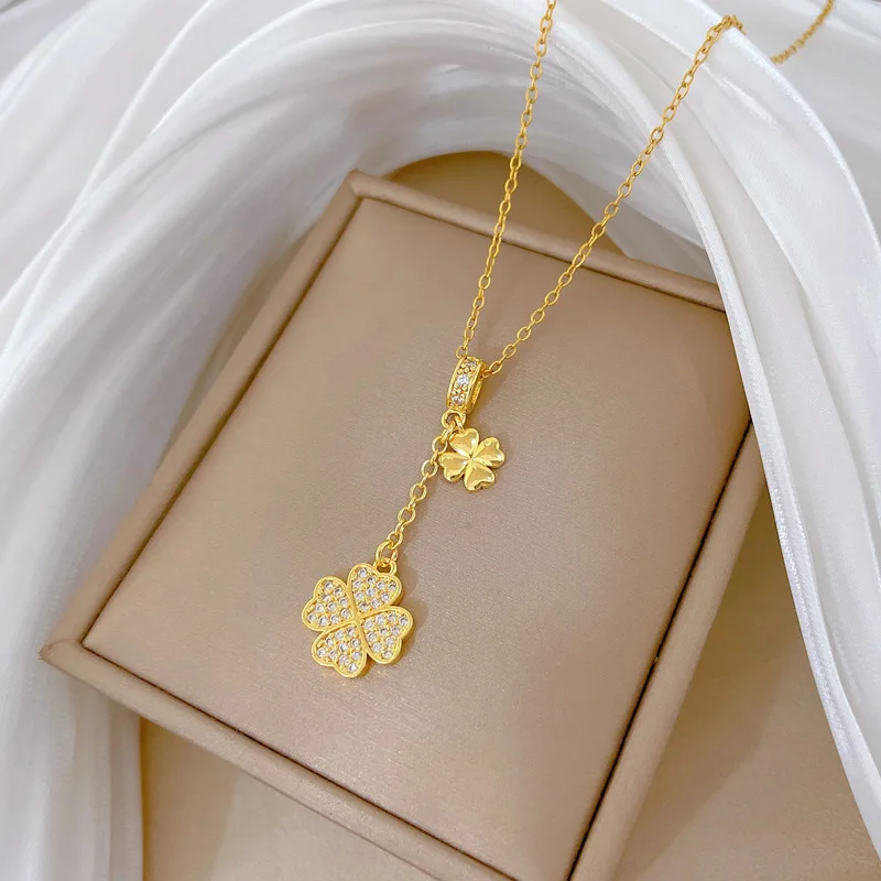 Luxurious Titanium Steel Women's Necklace with Clover Tassel Elegant Choker Chain Lightweight Versatile Design for Any Occasion